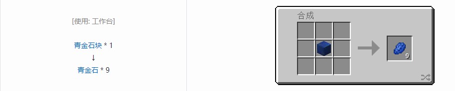 用途:可用于在附魔台上参与附魔,也可用于在锻造台上使用盔甲纹饰锻造模板给盔甲加上青金石纹饰。