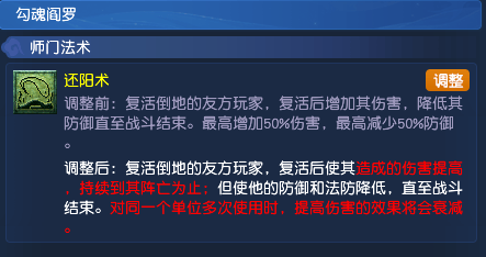 师门法术调整: