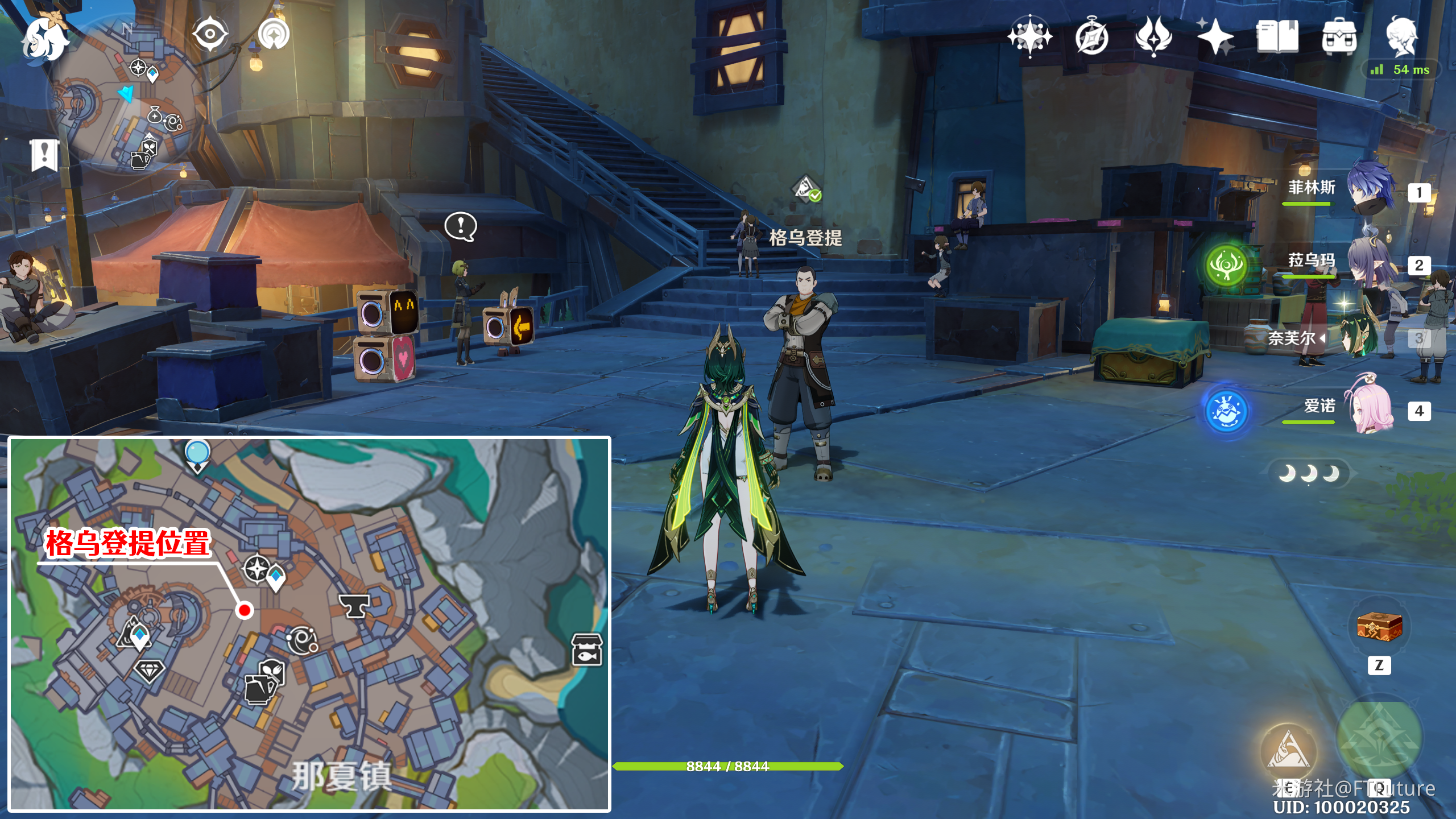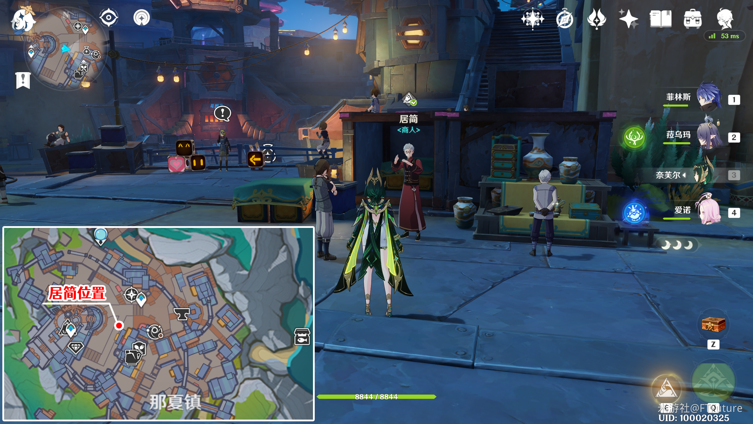 月之二版本中,可收集的情报共24份,均位于挪德卡莱的「那夏镇」。由于数量较多且点位密集,因此这里我将全部点位分成了4个区域,便于查看,后面会按照序号顺序逐个进行介绍。
