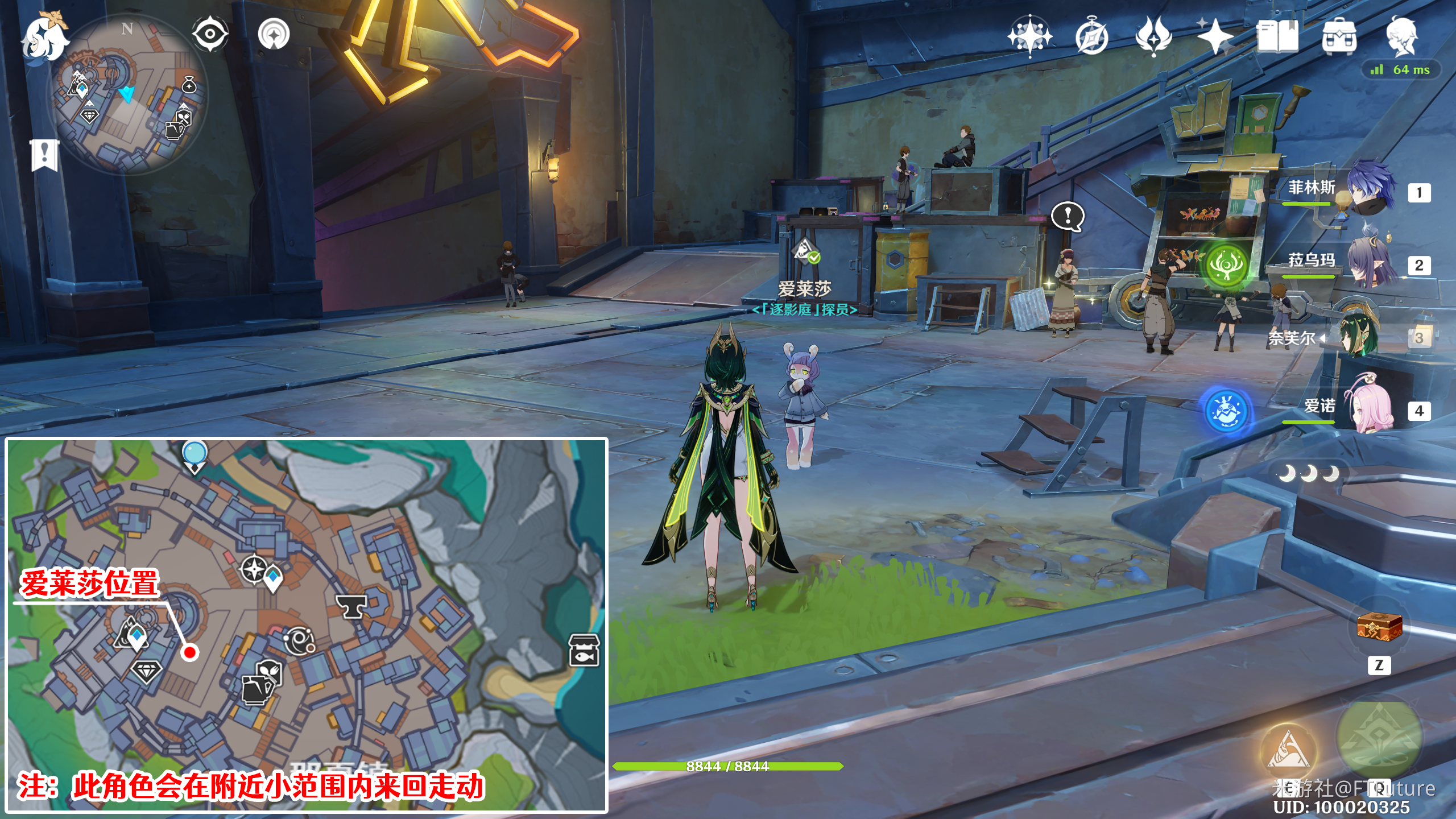 20. 爱莱莎:位于图示位置空地上,会在附近小范围内来回走动。