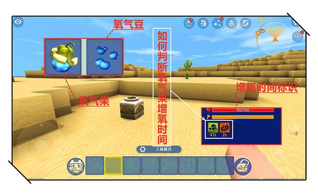 氧气果可以为我们提供氧气。当我们获取氧气果以后,食用它的可以获得氧气,在含氧量极低的环境中可以为我们的呼吸续航。每个氧气果只能为我们提供3分钟的氧气供应,超过3分钟将会失效,玩家将会重新回到缺氧的情况下,所以我们要时刻注意氧气果的供氧时间。
