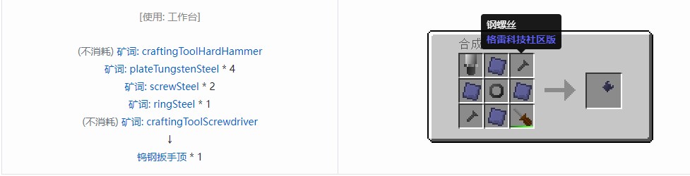 我的世界格雷科技社区版扳手顶合成表大全