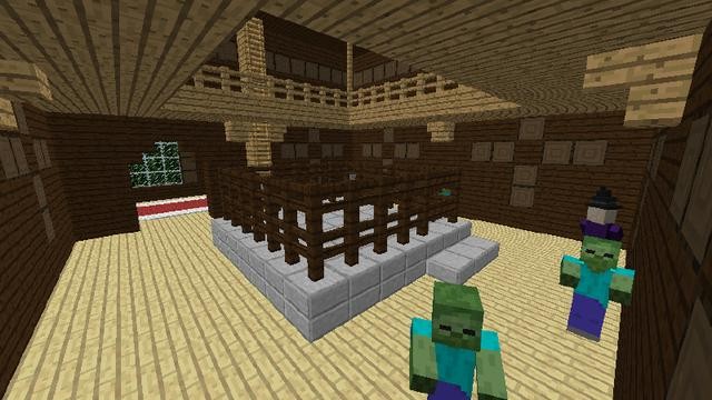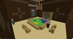 在地图房间的中间,有一些彩色地毯,如同一个地图一样,不过在这个房间内,总会生成两个卫道士和一个唤魔者,并且在这个房间内,还有一个独特的吊灯。