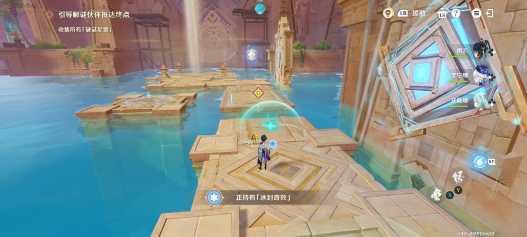 开启第二关后,来到一旁的[冰封奇效]旁,拾取并将其放置在基座上;