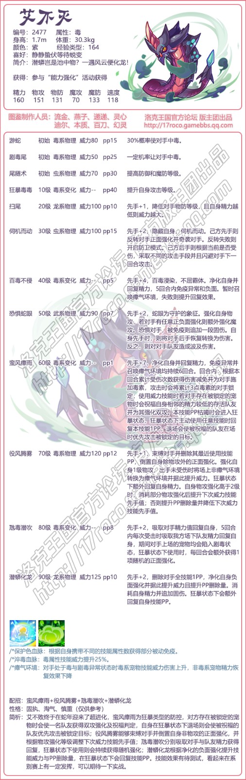 潜蟒化龙根据净化的负面强化提升技能威力与PP删除量,在狂暴状态下会回复技能PP。