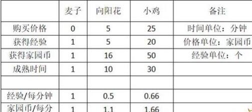 首先玩家要种麦子,因为这种农作物不仅成熟快,而且种子还是免费的。当成熟之后,就跟商人去进行交易,周而复始便能获得大量经验以及家园币。等到资源多一些了,就可以种植向阳花,他可以提供5点经验,不过成熟时间比较长,需要10分钟。