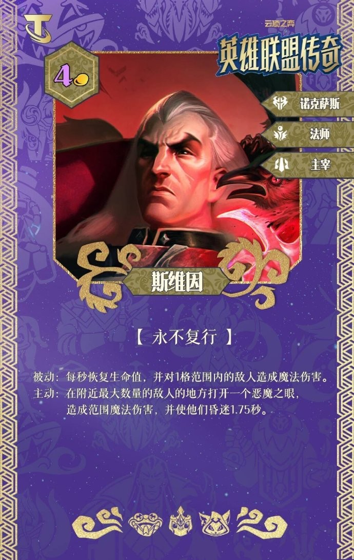 云顶之弈S16版本英雄联盟传奇主题PBE美测服更新了,在新赛季会增加很多新的羁绊和棋子,还有不少老羁绊,老英雄的回归,那么有不少小伙伴好奇各个英雄的技能是什么,下面就给大家带来s16斯维因羁绊效果一览。