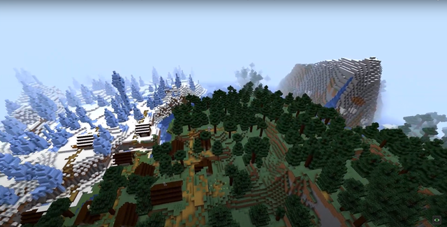 浮冰在“冰刺平原”上面会大量刷新,但是这样的地形却非常“罕见”,尤其是在1.16版本之后,60多种生物群系中寻找它更是难度加倍。而这个地图种子不仅开局有村庄,还在“冰刺平原”的边缘,再也不用愁找不到浮冰了。