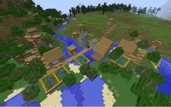 进入游戏后,离出生地不远就有一个小村庄,在这里可以先从村民那里获得一些必要的生存资源(勇士史蒂夫上线),随后向东一直走就可以出发寻找冰刺地形了。