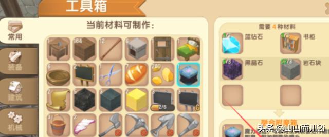 6、最后使用收集到的钻石。黑晶石。书柜以及岩石块就能合成融合附魔台了。