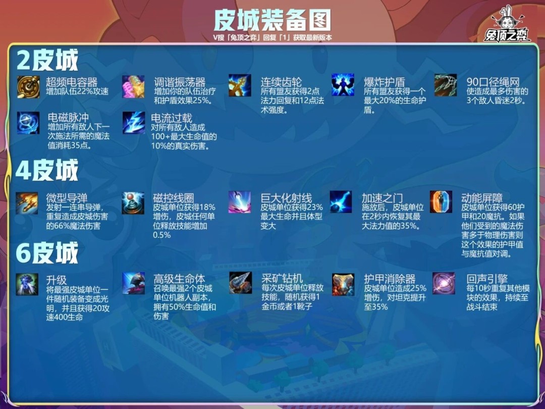 云顶之弈S16版本英雄联盟传奇主题,在新赛季会增加很多新的羁绊和棋子,还有不少老羁绊,老英雄的回归,那么有不少小伙伴好奇新赛季有哪些装备,那么下面就给大家带来s16皮城装备一览图。