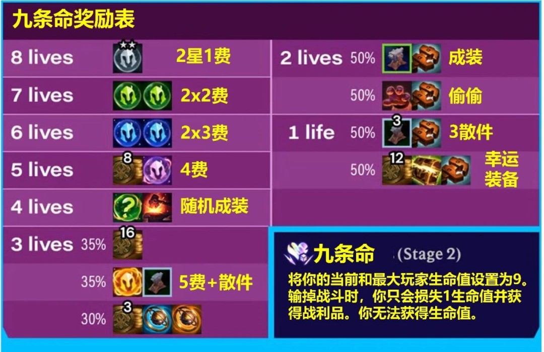 云顶之弈S16版本英雄联盟传奇主题,在新赛季会增加很多新的羁绊和棋子,还有不少老羁绊,老英雄的回归,有许多羁绊还有不少奖励,那么有倍速小伙伴好奇九条命有什么奖励,下面就来告诉大家。