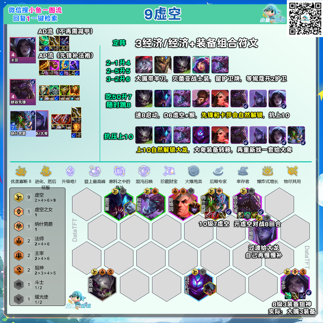 顺序任务:①2虚空过渡8回合→解锁先锋②8级大嘴带2.5件→解锁卡莎③10级7虚空→解锁大龙