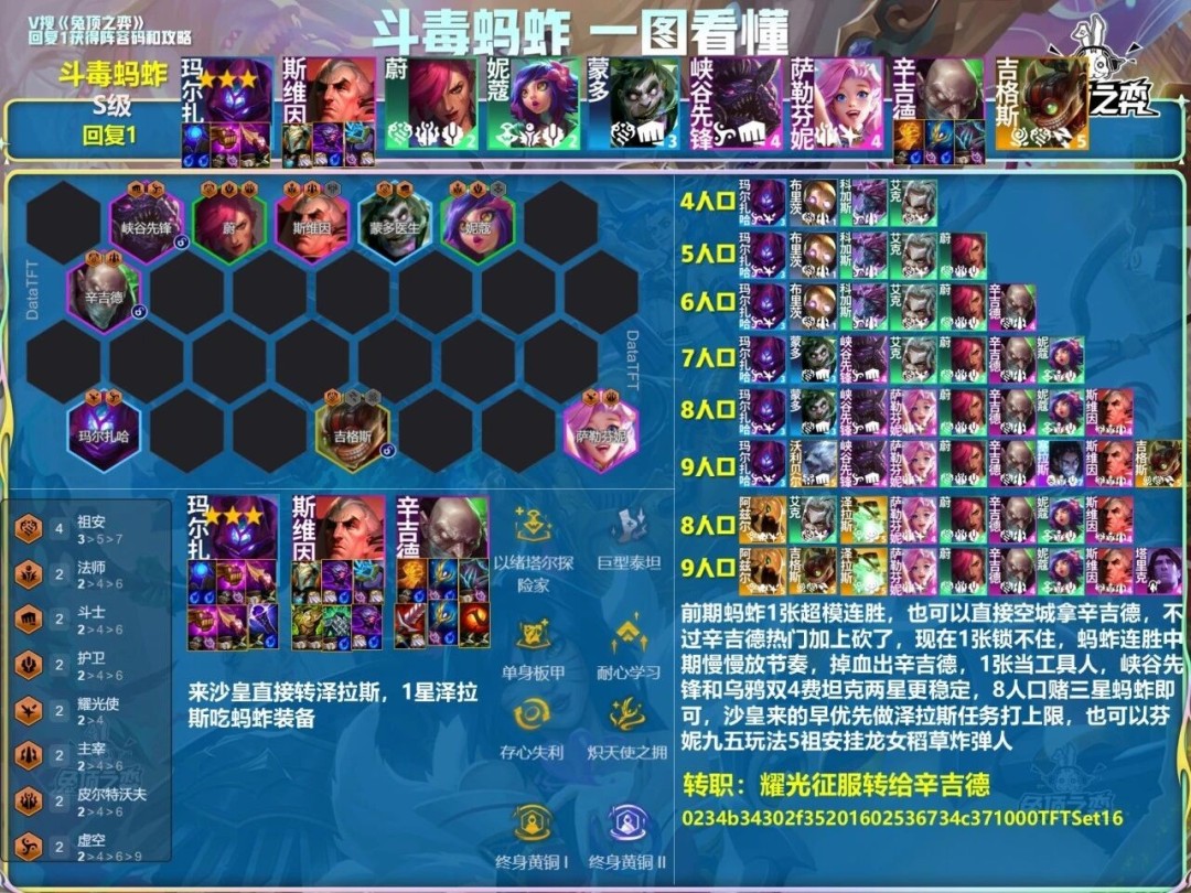 开局有3以绪塔尔随时挂,没有就空城,空城6连败,5人口的时候挂上4个祖安或者主宰,解锁辛吉德,优先做辛吉德装备和一个石像鬼,1张辛吉德连胜,石像鬼解锁蝎子