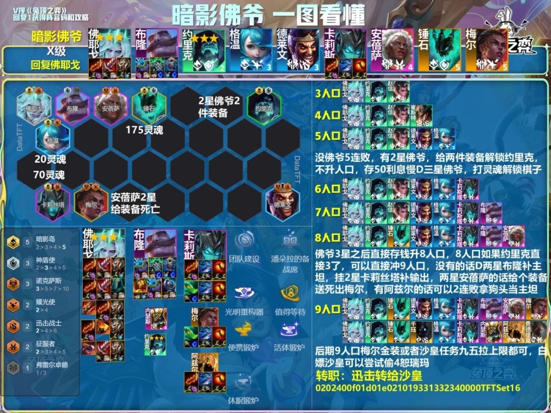 佛爷3星之后直接存钱升8人口,8人口如果约里克直接3了,可以直接冲9人口,没有的话D两星布隆补主坦,挂2星卡莉丝塔补输出,两星安蓓萨的话给个装备送死出梅尔,有阿兹尔的话可以2连败拿狗头当主坦
