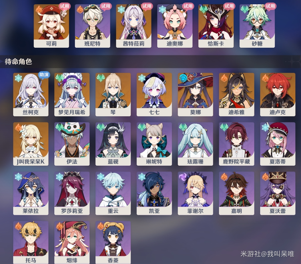 许多辅助角色不用拉满,卡在入场等级就OK了,有些甚至不用带圣遗物武器;在角色不够时可以好好利用自己手里的这些四星。