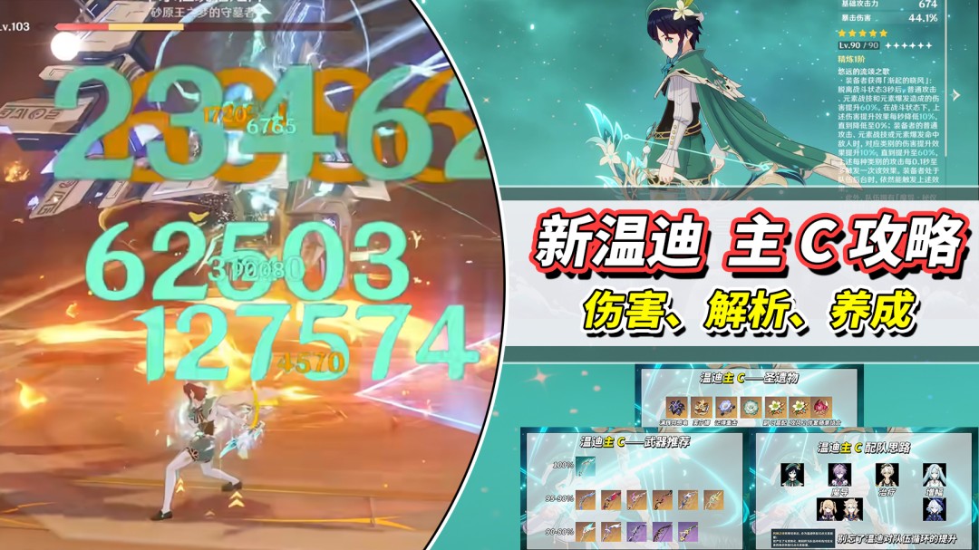 技能方面,普通、元素战技、元素爆发尽量9级,皇冠有余可考虑上10级。新温迪这3个技能伤害占比都不低,没必要省这点儿资源。