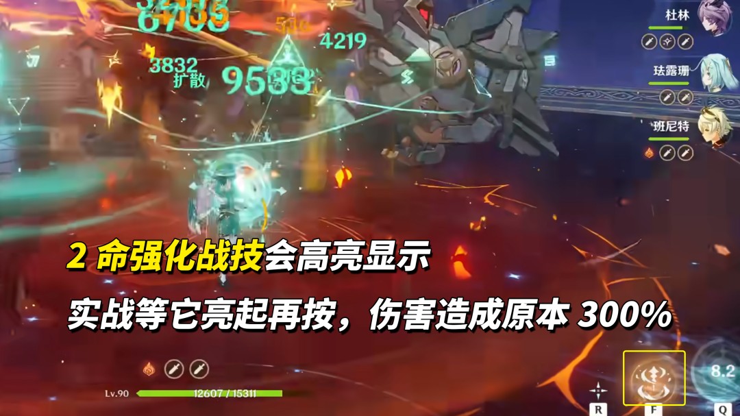 2命,“战技降低风物12%抗性,敌人击飞落地前额外12%减抗”替换“战技直接降低风物24%,施放元素爆发刷新战技,并且穿透箭25%概率强化战技使其伤害造成原本300%”。