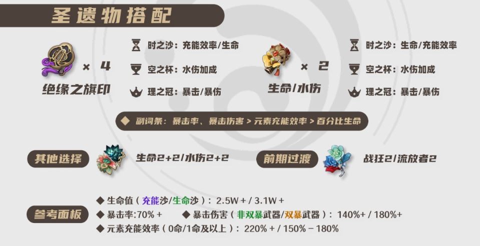 元素充能效率(0命/1命及以上):220%+/150%-180%