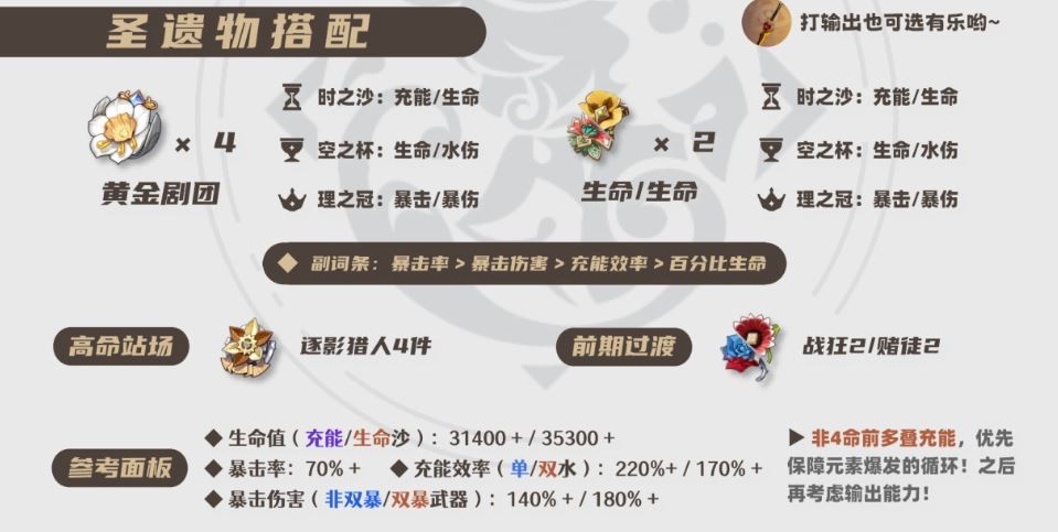 非4命前多叠充能,优先保障元素爆发的循环!之后再考虑输出能力!