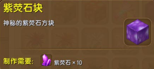 玩家将获取的紫荧石直接放置在工作台里,这样就可以合成紫荧石块。