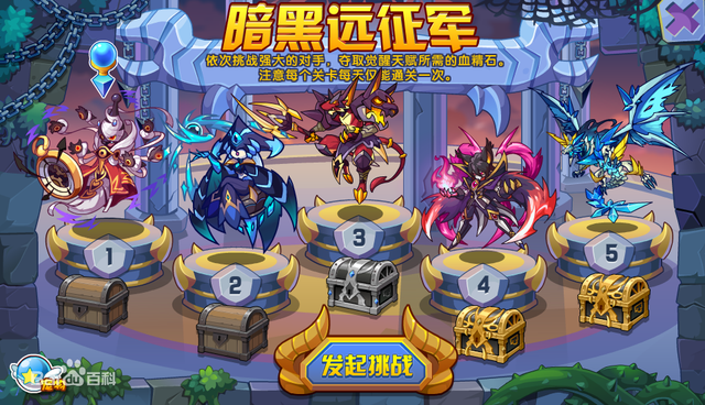 黑暗远征军是洛克王国中的PVE玩法,总共有五道关卡。