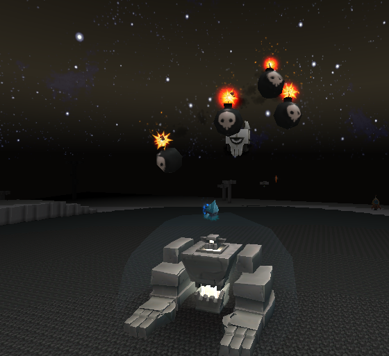图腾柱会发出冲天光芒,伴随着一股怒气蔓延,周围的一切,接触到怒气都会被化为乌有,包括周围的图腾石柱,然后我们的萌眼星大BOSS——远古巨像就会出现在中央图腾所在的位置上: