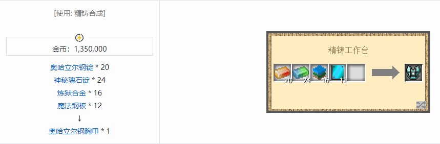 我的世界里面有很多的模组,今天给大家带来了游戏里面的魔法金属盔甲合成表大全,还有小伙伴不清楚这个模组的盔甲怎么合成,下面就是具体的内容.