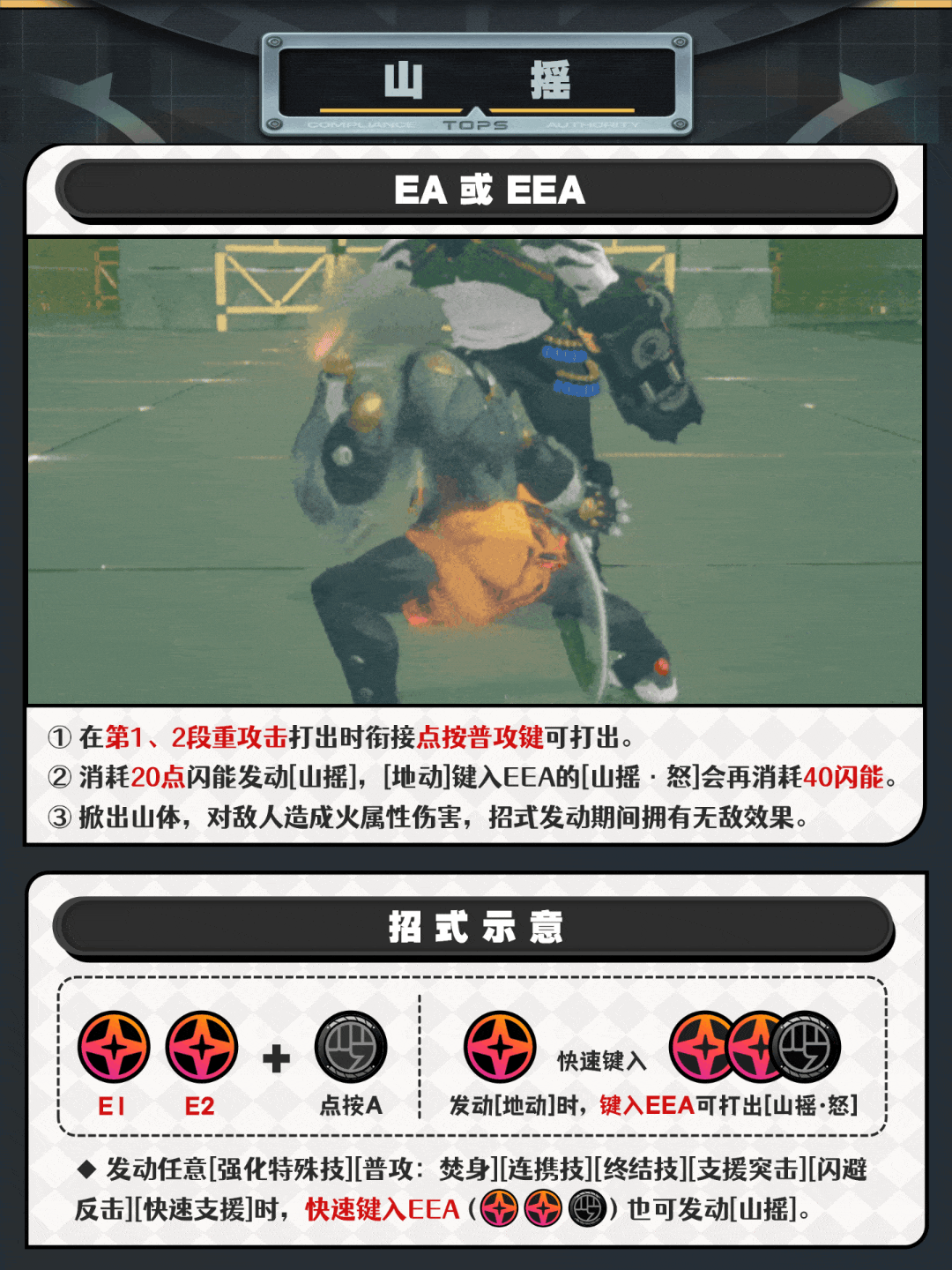 ③ 本质就是在发动地动期间预输入EEA即可衔接山摇,而此时若有至少40点闪能将发动山摇·怒。