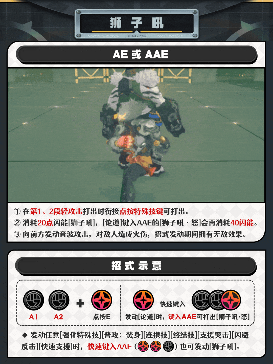 ③ 本质就是在发动论道期间预输入AAE即可衔接狮子吼,而此时若有至少40点闪能将发动狮子吼·怒。