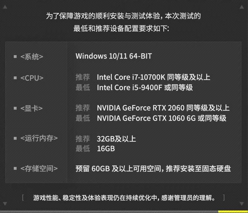 ※游戏性能、稳定性及画面表现仍在持续优化中,低于最低配置要求的设备可能无法进入游戏。感谢管理员的理解与支持!
