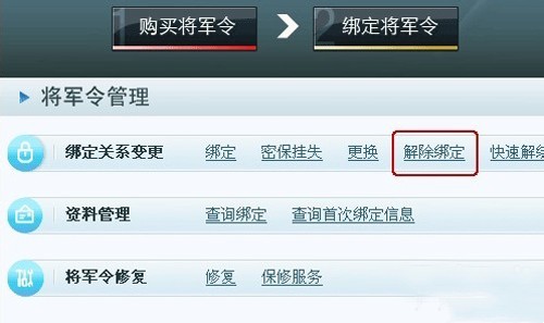①、首先大家登陆网易将军令官网(http://ekey.163.com/),然后在将军令管理与帮助栏目选择“解除绑定”;