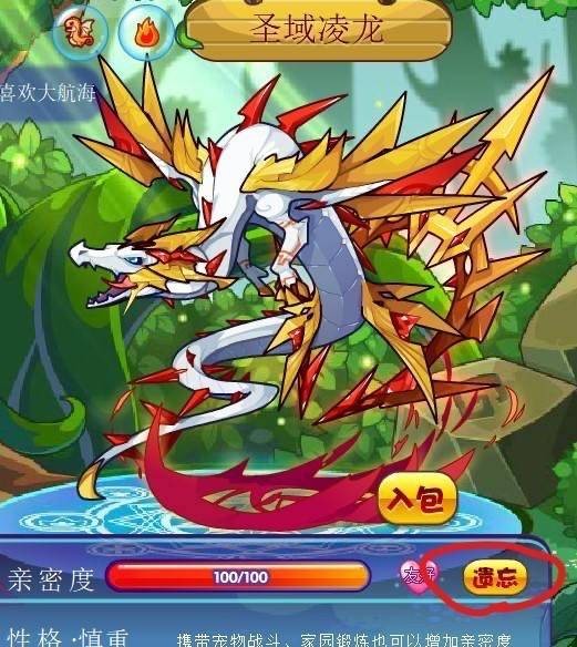 3、点击宠物,如果之前亲密度已满,则需要点击“遗忘”从新培养,如为培养或亲密度很低则无需次操作。