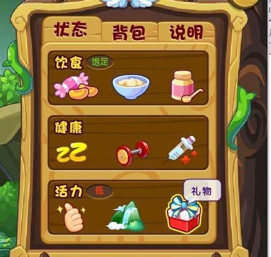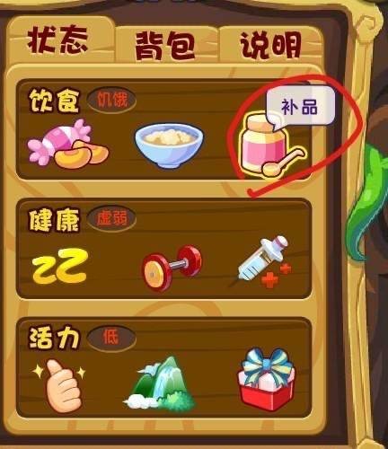 4、亲密度清零后,我们首先点击“食物-补品’给宠物喂金豌豆(4个)。