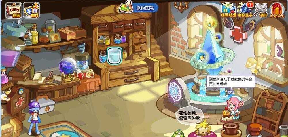 在宠物医院里面点魔法泉水。