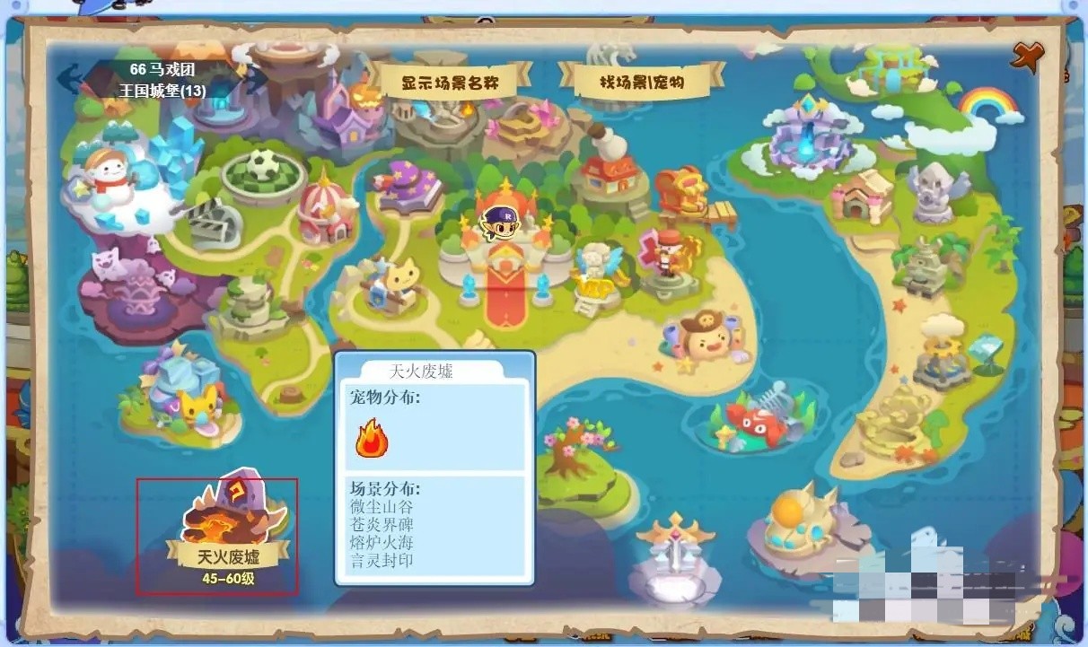 洛克王国天火废墟作为新出来的地图,在地图的左下角,将地图往下拉就可以看见,这里的宠物主要是火系宠物。并且焚天之火活动就在这里。