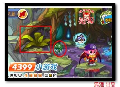 3)这时候门口有个奇怪的影子问你要不要进来玩呢?不要被他迷惑了,先点击旁边的草丛,跑出一只不知道是啥的东东,然后再等奇怪的影子缩回洞里,就可以进入咯