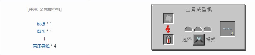 高压导线是一种损耗特大的超高压运输电缆。它能承受2048EU/t的电压,每格损耗0.8EU/t。