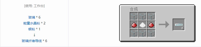 它能承受8192EU/t的电压,每格损耗0.025EU/t,通入超过电压的电流会导致烧毁(消失并冒烟)(在原版IC2下无法实现),接近通电的玻璃纤维导线不会造成伤害。