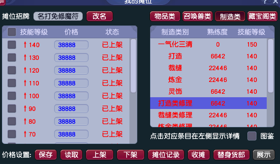 5、学习打造技巧、炼金术、裁缝技巧、淬灵之术等技能自己修理装备。修理有一定几率会失败。现如今学习辅助技能需要很多的帮贡,如果不是准备专门做打造的话,四打的优先级肯定是低于强身、强壮、神速这些技能的,而铁匠铺和长安城布店门口也遍布了很多打造修理的摊位,并不推荐。