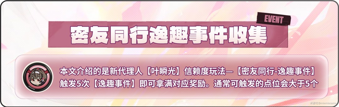 新代理人【叶瞬光】信赖度玩法—【密友同行-逸趣事件】