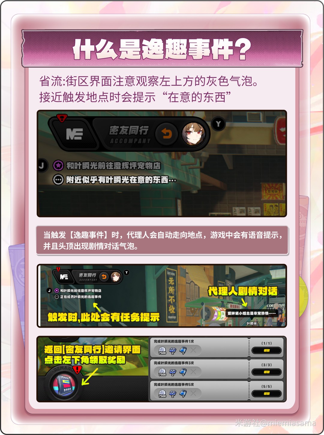 触发5次【逸趣事件】即可拿满对应奖励。通常可触发的点位会大于5个。