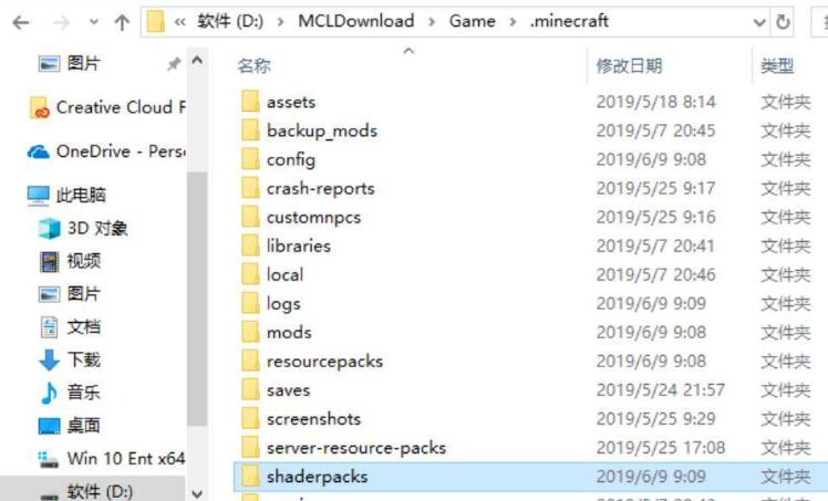 4、最后可以看到【shaderpacks】文件夹,将其打开就能够看到光影文件了。