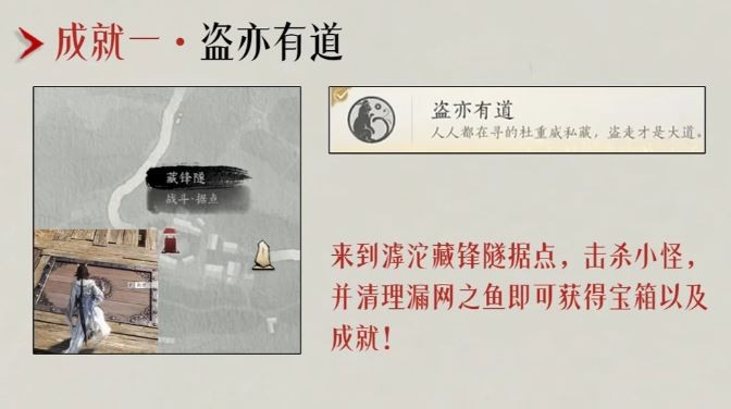 来到滤沱藏锋隧据点,击杀小怪,并清理漏网之鱼即可获得宝箱以及成就!