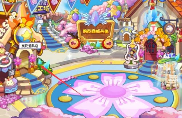 3、在商店街的左侧就是有一个宠物道具店,点击进入。