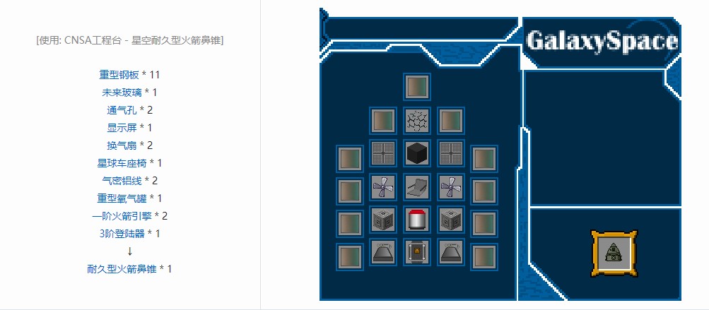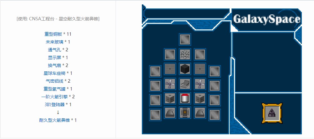 我的世界星空mod火箭元件合成表大全2026